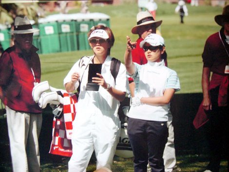こんな偉そうに書いていますが、実は私にとってターゲットを決めることは、苦手分野の一つ です。自分自身が元々研修生とかではなく、ただのお遊びのゴルファーであり、ゴルフに対して真剣に取り組んだ時期が全く無いということが大きな要因だと思いますが、選手がどういうイメージを持っているのか、どういった攻め方をしたがるのか、どんな球を打つのかということを、キャディをしながら経験で得て行くしかなく、お陰で苦手意識が全く抜けません。特に男子プロの打球は、想像以上に強さがあるので、なかなかそのイメージを自分の中で作り出すことができませんでした。